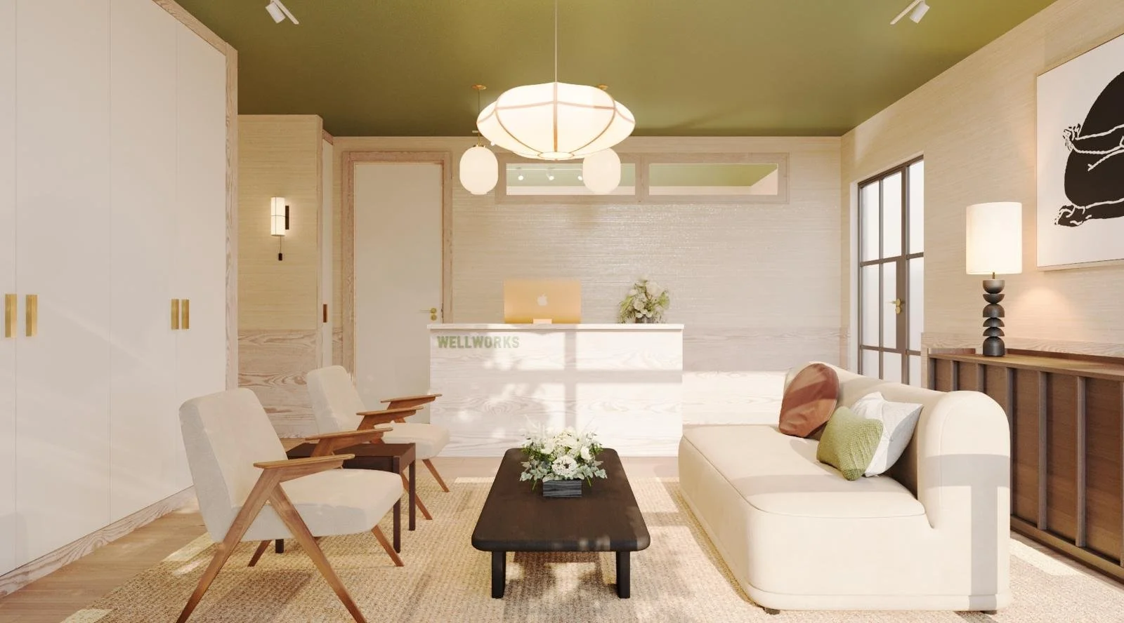 The wellness clinic is designed as a calm and grounding space in the heart of London. Walls are lined with raw pine panelling and soft, textured wallpapers that bring warmth and tactility to the clean, contemporary interiors. The natural materials create a subtle rhythm and sense of balance, offering a serene backdrop for practitioners and an inviting, restorative atmosphere for clients.