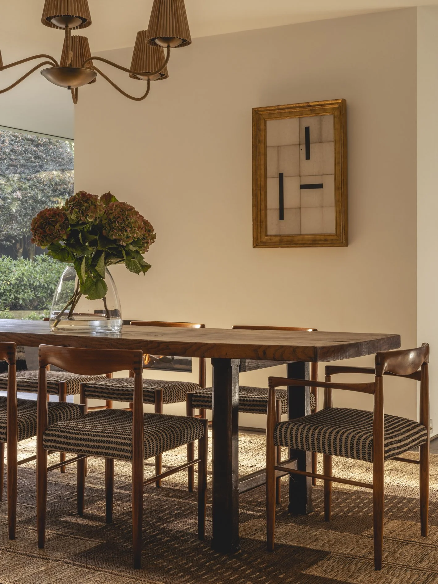 At the centre of the dining room sits an 18th-century French fruitwood table - solid, timeworn, and made for gathering.